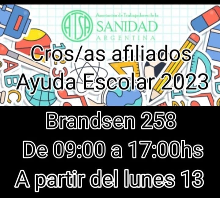 . Brandsen 258, de 9 a 17 hs. Presentarse con rec. de sueldo y doc. de niñ@s. Universitarios y Terciarios con Certf. de Alumno Regular
